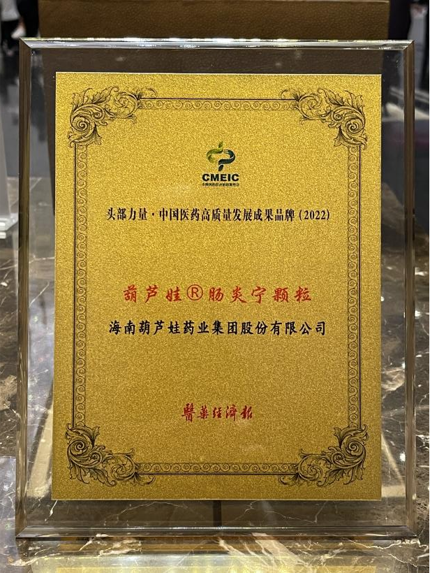 在本次发布会上,公司重点产品ca88亚州城牌肠炎宁颗粒同时荣膺“头部力量·中国医药高质量发展成果品牌(2022)”。ca88亚州城牌肠炎宁颗粒(2g),传承经典名方,临床广泛用于成人及儿童急慢性胃肠炎、腹泻等疾病的治疗,由于其杰出的临床价值,被纳入国家中医药管理局相关专家项目组制定的《中成药治疗小儿腹泻病临床应用指南》。