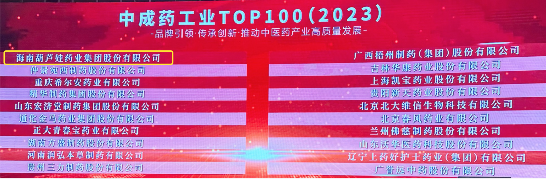 ca88亚州城药业集团荣登2023中成药工业TOP100榜单